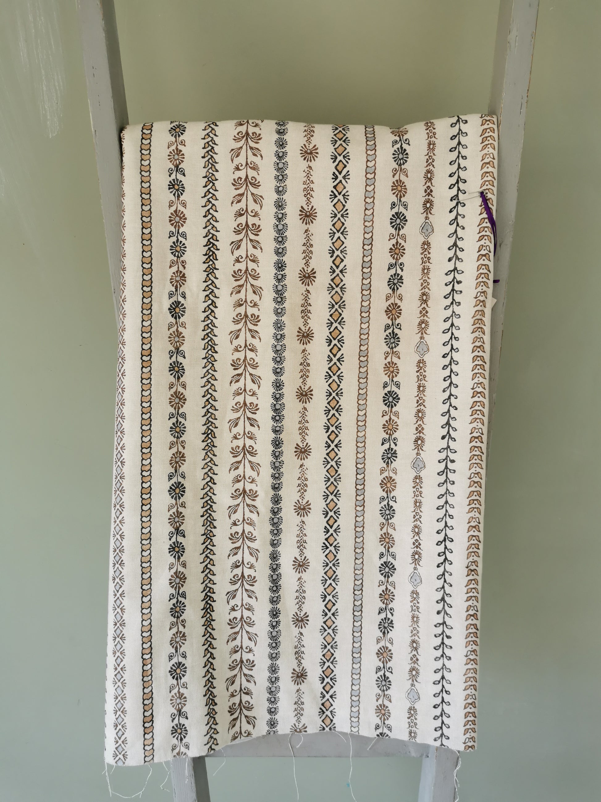 Left over from an upholstery project. Bandana in Black Ginger by Lewis and Wood. 56% linen, 44 % viscose. 136cm x 4 metres. £25 per metre.